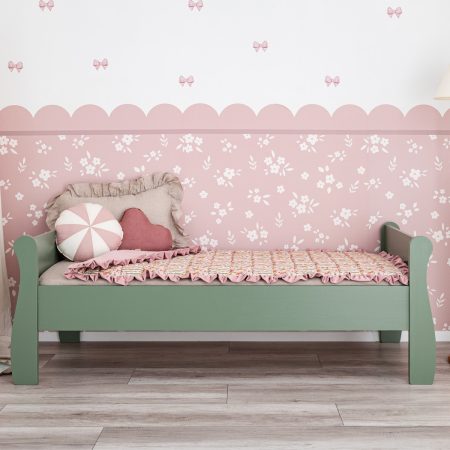 Matériel – le lit est en bois de pin naturel de première classe. Les lits en bois naturel sont très solides et durables. Le bois est soigneusement poncé et poli pour refléter avec précision la douceur du bois naturel. Grâce à ces mesures, il n’est pas nécessaire de protéger le lit avec des agents chimiques de protection du bois (vernis, laques, etc.). Les traitements de polissage garantissent une douceur à 100 % du bois.