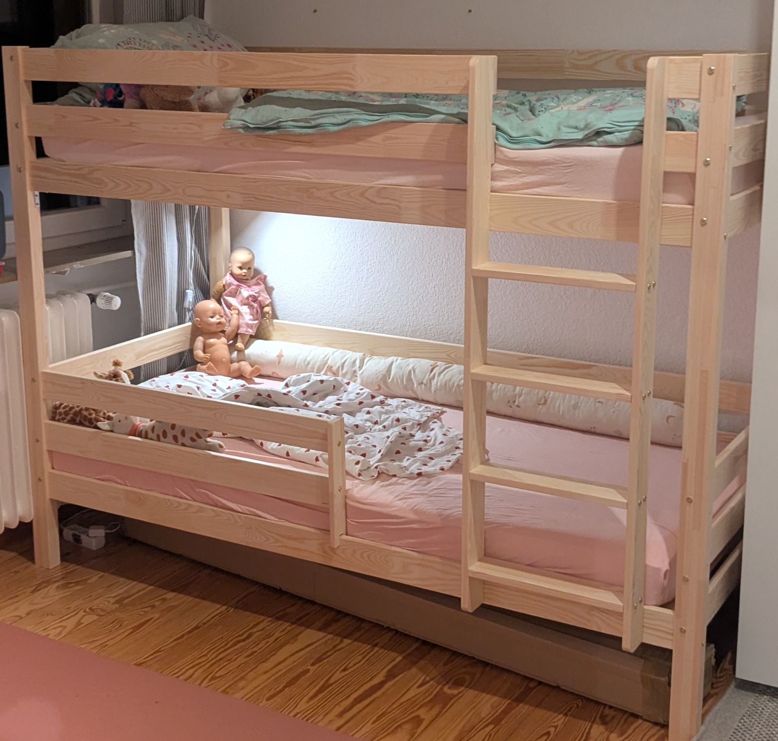 Le lit est équipé de deux sommiers à lattes en bois. Les dimensions du sommier sont adaptées aux dimensions du lit du bas et du lit du haut, de sorte que toutes les pièces correspondent parfaitement.